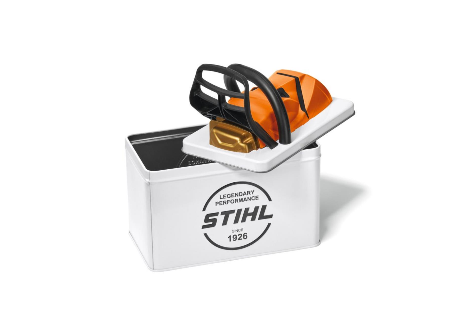 Diese unverwechselbare Kaffeedose im einzigartigen STIHL Design im Look der MS 500i Motorsäge ist ein echter Hingucker in jedem Küchenregal und ein ultimatives Muss für jeden STHIL-Fan. Selbstverständlich eignet sich die Dose mit den Maßen 18 x 8 x 11 cm auch zum Aufbewahren von anderen Lebensmitteln oder Gegenständen. Mit einem Stülpdeckel lässt sich der Inhalt luftdicht verschließen. Um die Kaffeedose lange zu erhalten, sollte diese bitte von Hand gespült werden (nicht spülmaschinengeeignet). Maße: 18 x 8 x 11 cm